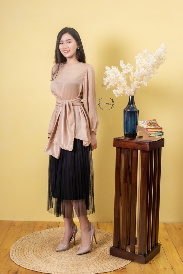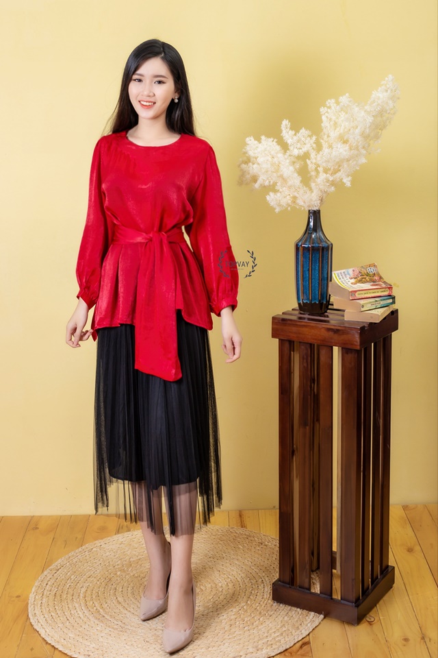 Áo lụa thắt nơ eo – A165