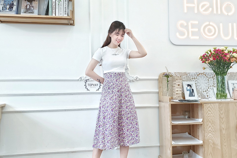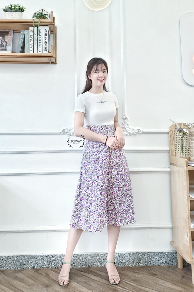 ☘️ Một chút dịu dàng cùng chân váy cực xinh nhà  #topvay. Với dáng váy midi uyển chuyển, nhẹ nhàng kết hợp với áo thun sẽ giúp nàng thêm thanh lịch, trẻ trung, và thon gọn hơn đáng kể cho diện mạo ngày mới đó ạ😘