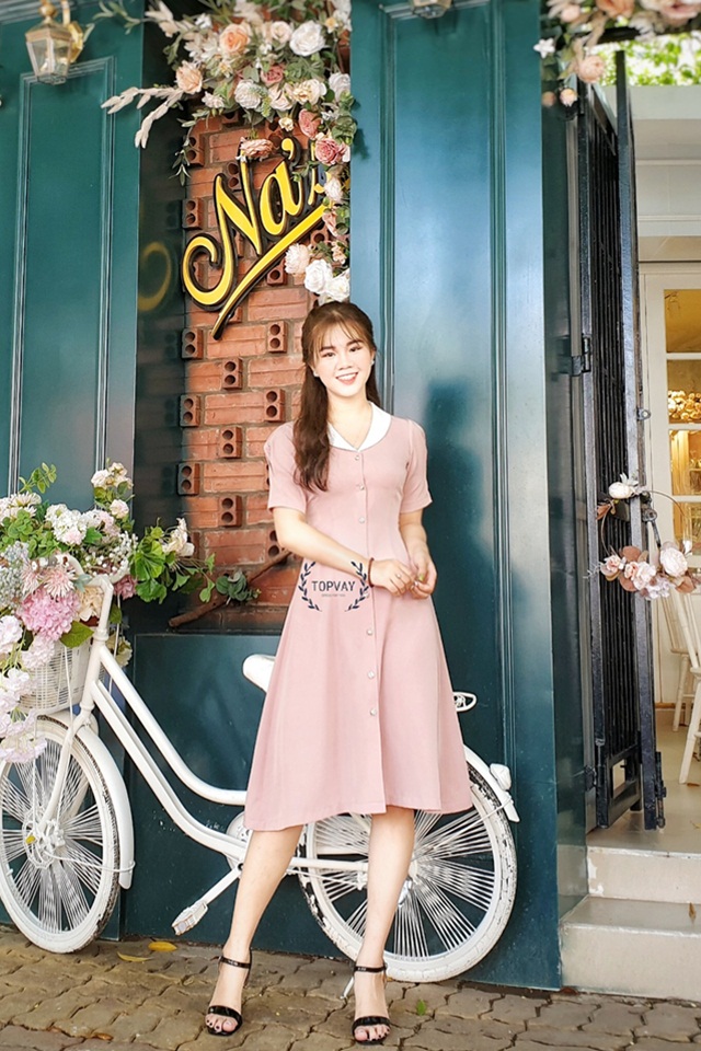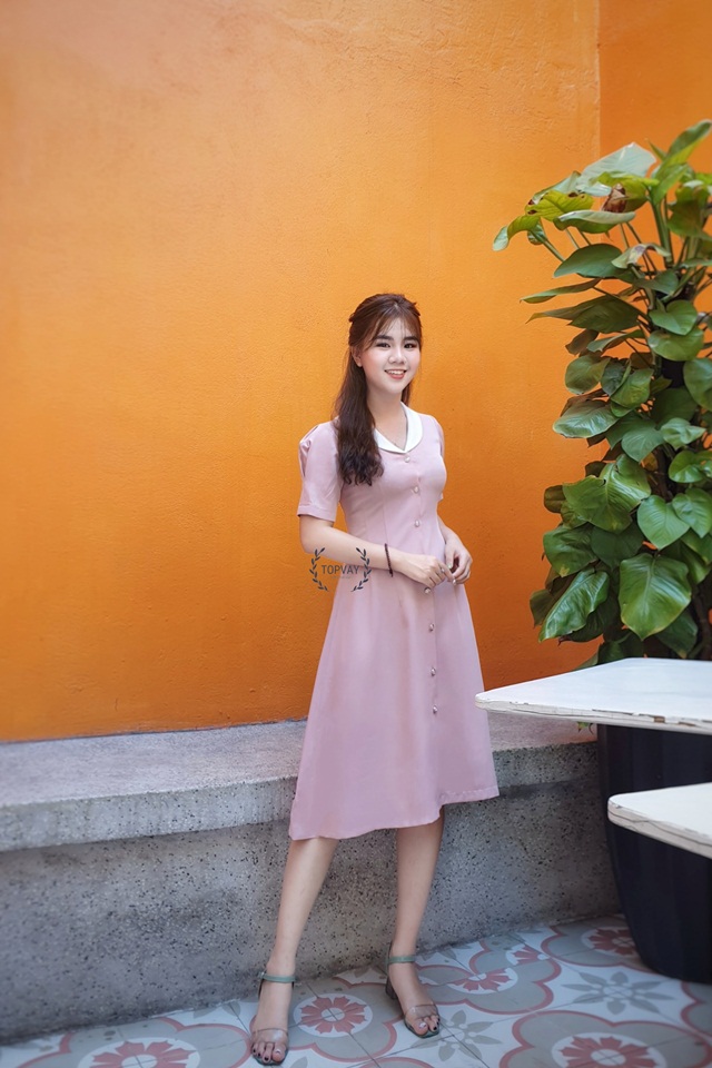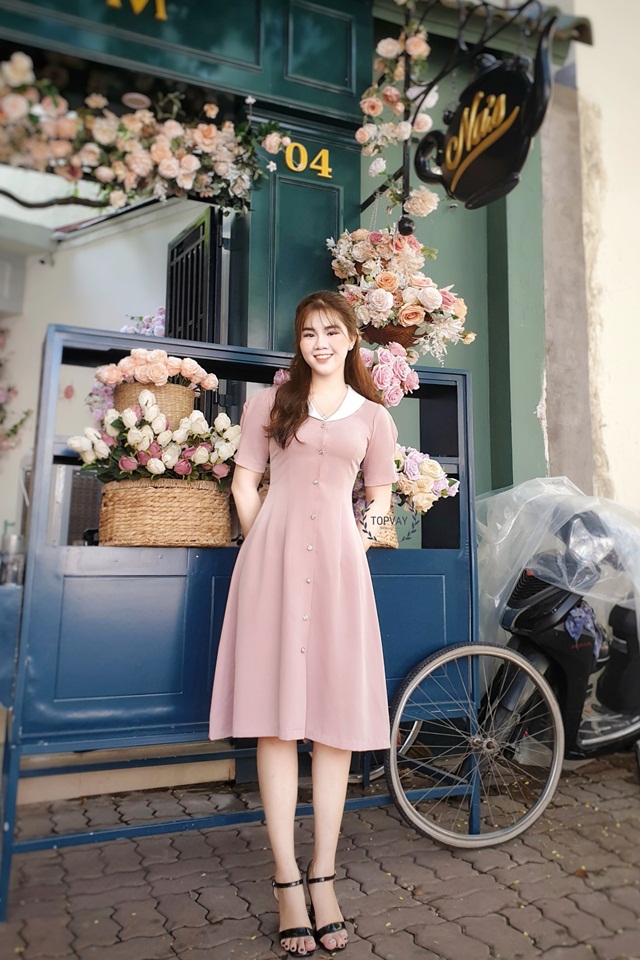 ✨ Dáng đầm xòe chiết eo phù hợp với mọi dáng người được nhấn nhá với chi tiết cổ sam trắng cách điệu trẻ trung, đi chơi hay đi làm cũng đều rất xinh!
