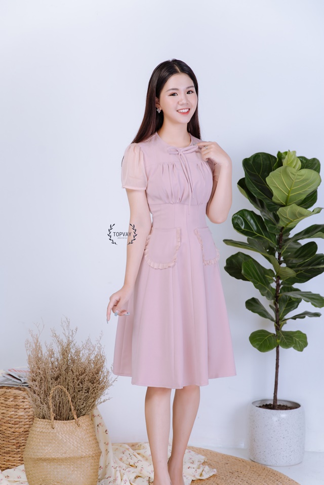 Hãy là người đầu tiên nhận xét “Váy xòe hồng nhún ngực phối tay voal – V1682”