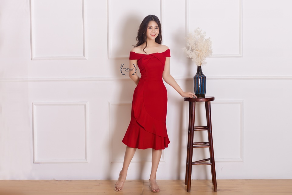 3. Váy đỏ dự tiệc trễ vai quyến rũ